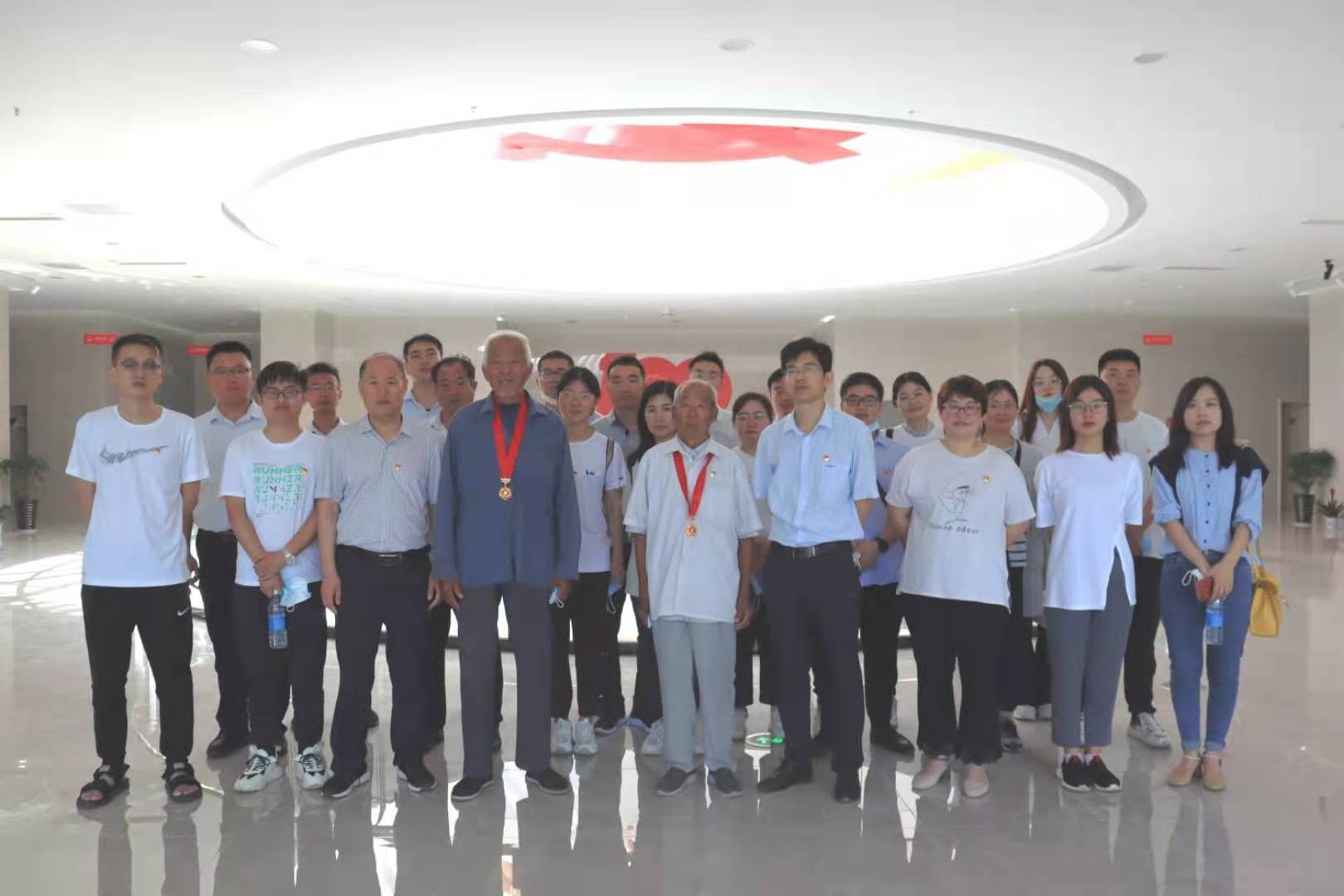 参观结束后,路遇两名50年老党员,全体人员与老党员合影留念。