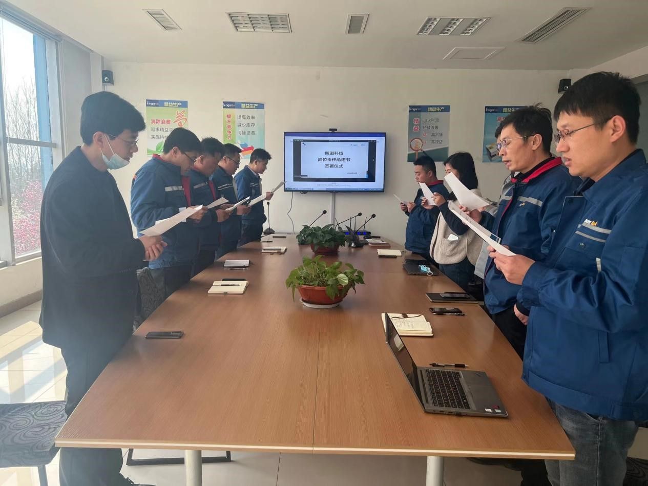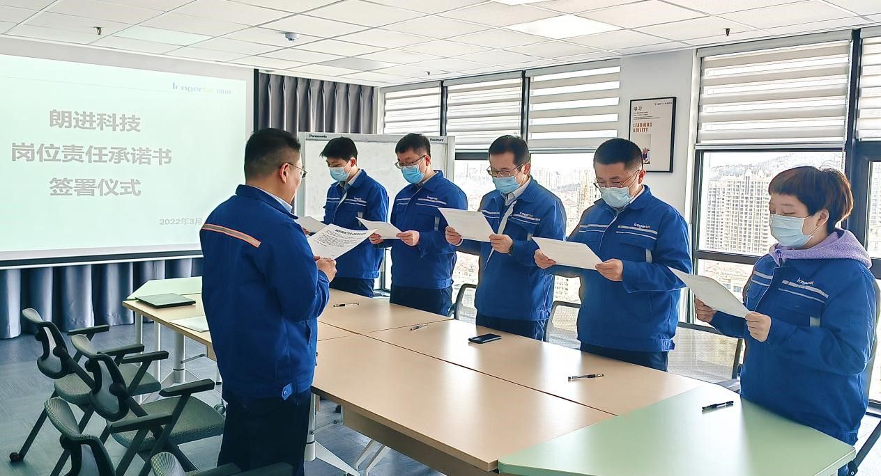 为明确工作职责,强化执行落实,确保朗进科技2022年度各项工作有序高效推进。基于疫情原因,自3月21日起,由人力行政部组织,各中心各部门负责人分批在青岛软件园20层会议室和莱芜工业园会议室参加了2022年度岗位责任承诺书签订仪式,公司总经理李敬恩全程参与。