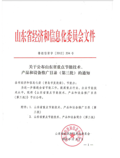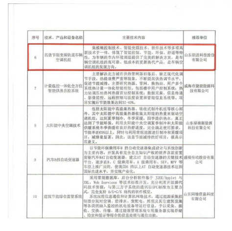 我公司“高效节能变频轨道车辆空调机组”项目列入“山东省重点节能技术、产品和设备推广目录。