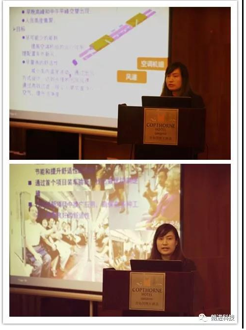 中车长春轨道客车股份有限公司教授级高工康伟:《城市轨道交通车辆空调设计问题研讨》,她向来宾分享了地铁车辆空调系统的几种送风型式,介绍了幅流风机、换热器、低温热泵等城铁空调的技术研究及应用。