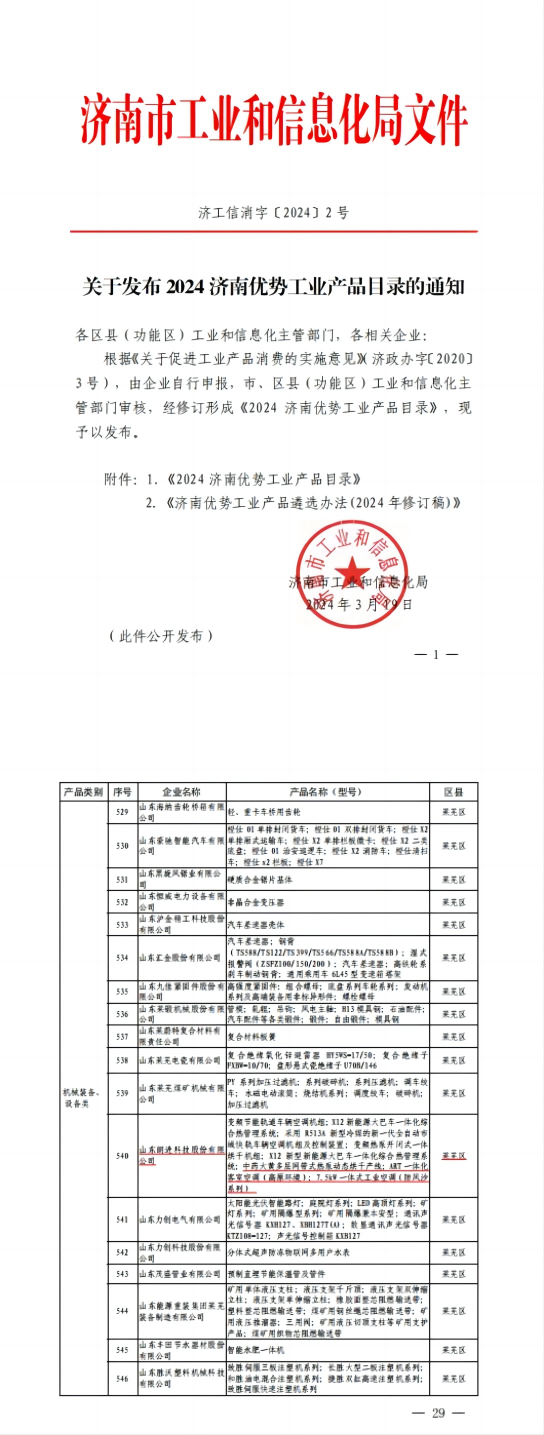 根据济南市工信局发布“2024年济南市优势工业产品目录”文件,朗进科技三个项目列入2024济南优势工业产品。这一成就不仅彰显了公司在工业领域的卓越实力,也进一步体现了我们不断追求创新和卓越的精神。